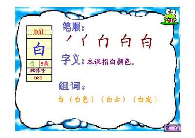 4、一年级上册语文组词的方法有:根据字义组词、根据字音组词、根据形状组词,其详细内容如下:根据字义组词:汉字中有许多字具有相似的含义或用法,可以根据字义将它们组合在一起。