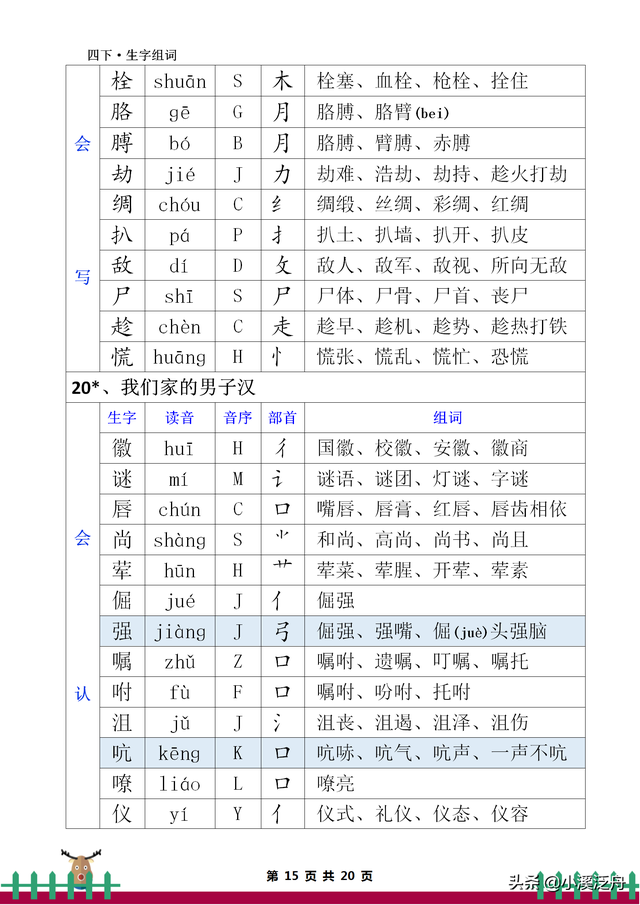 4、胳词语和拼音为:gé、gē、gā胳膊、胳肢、胳臂、胳揪、胳膀、遗胳、胳应、胳背、胳膊肘。