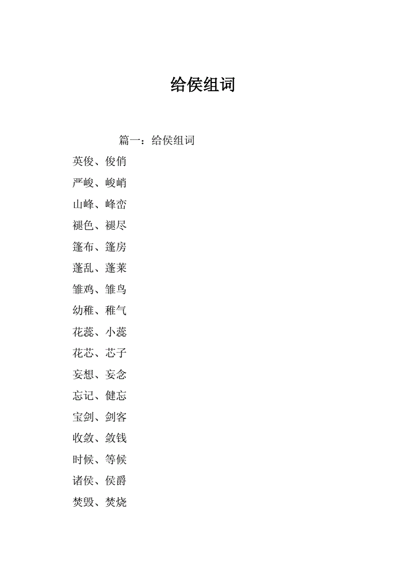侯怎么组词:(1)万户侯、侯门、王侯、夏侯、五侯蜡烛、酇侯、侯甸、都乡侯、诸侯王。(2)马上封侯、留侯、故侯、素侯、君侯、侯家、七贵五侯、亭侯、侯伯。
