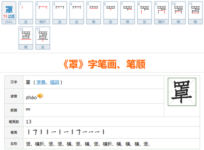 2、就一个音。罩 zhào 〈名〉形声。从网,卓声。本义:捕鱼的竹笼。