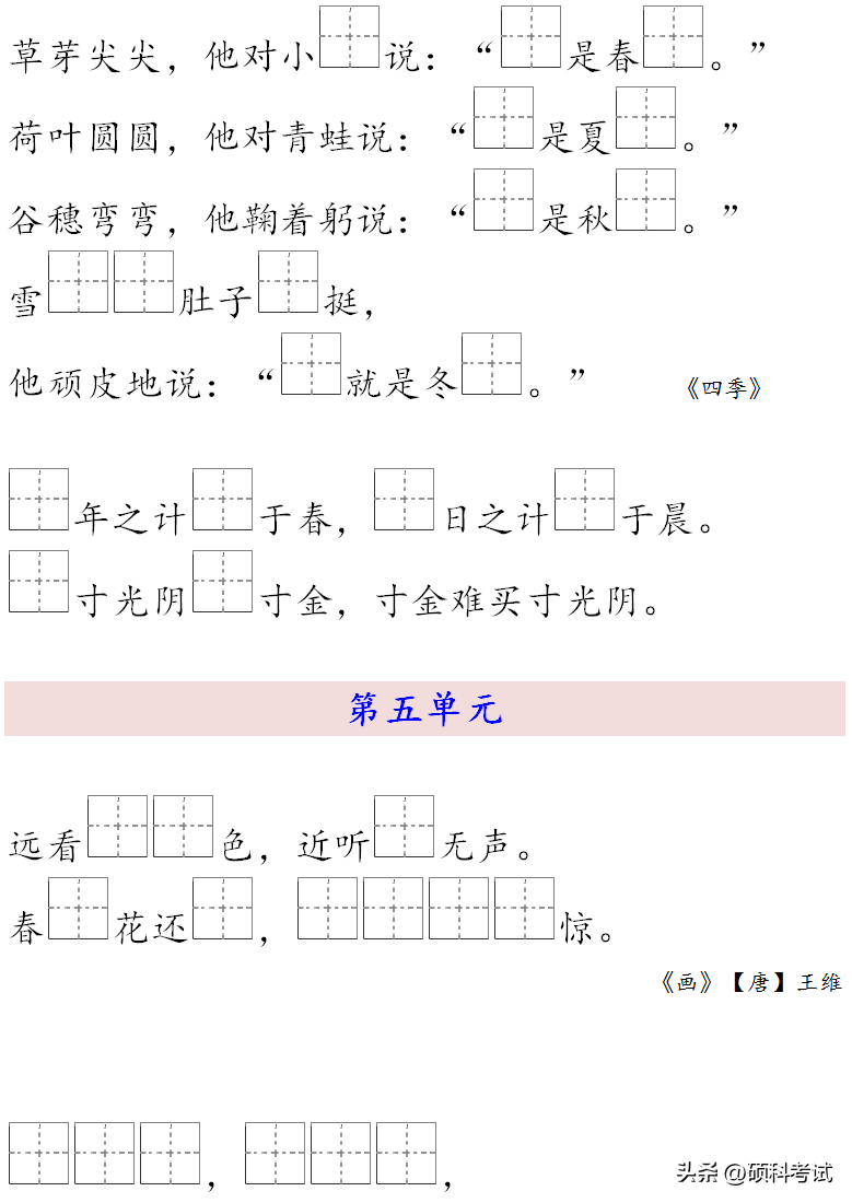4、清清的(溪水)。清清的(河水)。清清的(泉水)。清清的(湖面)。清清的(蓝天)。