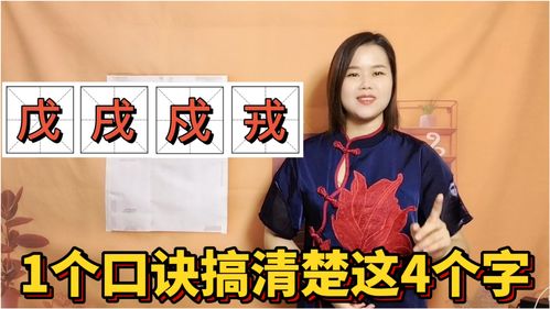 “戊读wù,天干甲乙丙丁戊;加横xū,地支亥字前位戌;加点shù,军队防守去卫戍;十字róng,身穿戎装守边疆。”此外,还有两个口诀:横戌点戍戊中空,十字交叉便是戎。点戍空心戊,横戌十字戎。