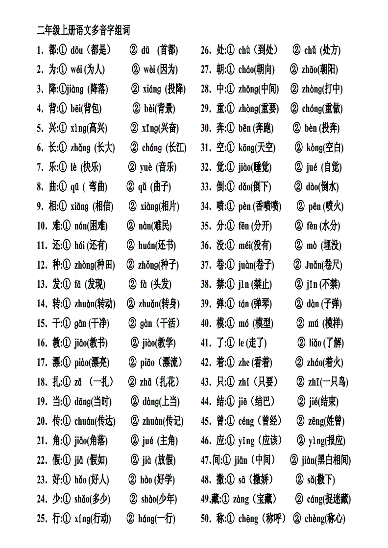 能帮我找50个多音字组词吗