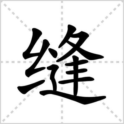 2、拼音:féng ~纫。~缀。~制。~补。~连。裁~。拼音:fèng ~子。~隙。裂~。见~插针。天衣无~。